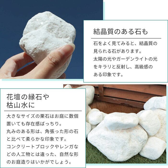 ごろっと大きめの白玉石は、ホームセンターなどではお取り扱いの少ない珍しいサイズです。
