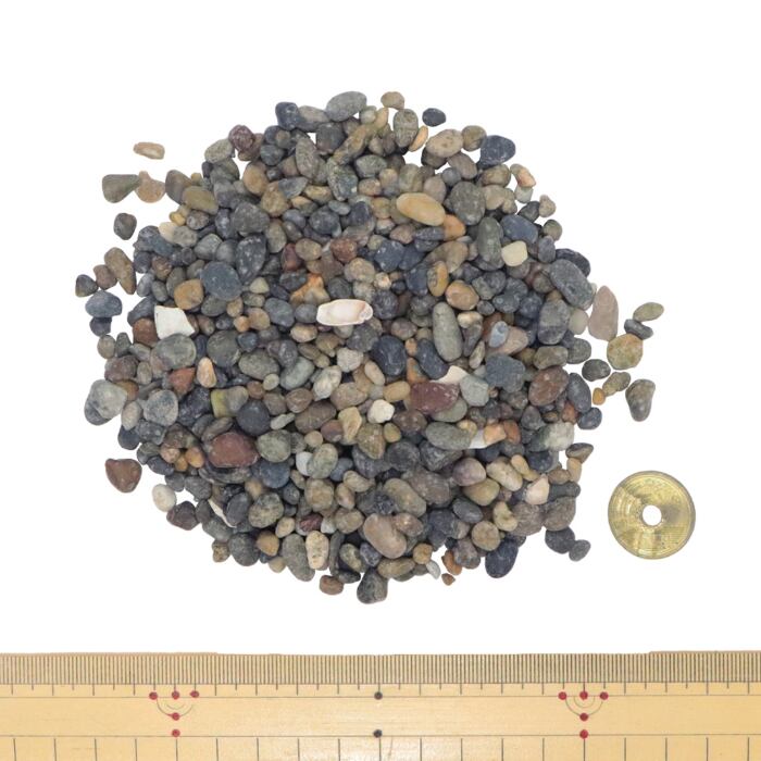 全体的に丸みを帯びている形状の、国産玉石(玉砂利)です。
